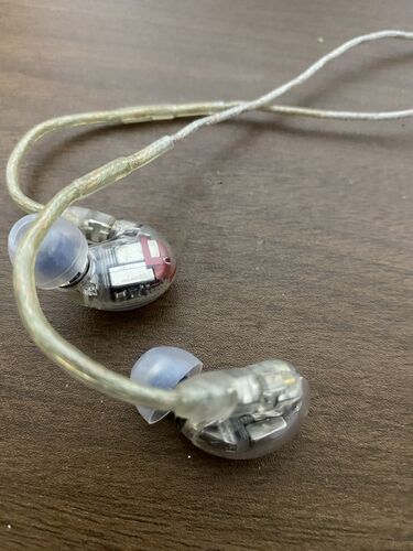 【スペック】 メーカー:SHURE 発売年:2013年 再生周波数帯域:15Hz~ 20000Hz 参考価格:109,090円形状:カナル型 特記事項:SHURE掛け、ba4基、ローパスフィルタ、ノズルによる音質調整、細軸 ※ケーブルは純正品、ノズルはブライト、イヤーピースはspin fi…